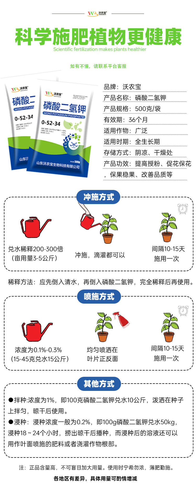 磷酸二氢钾正品农用肥料高纯度磷钾叶面肥花卉果树蔬菜通用水溶肥