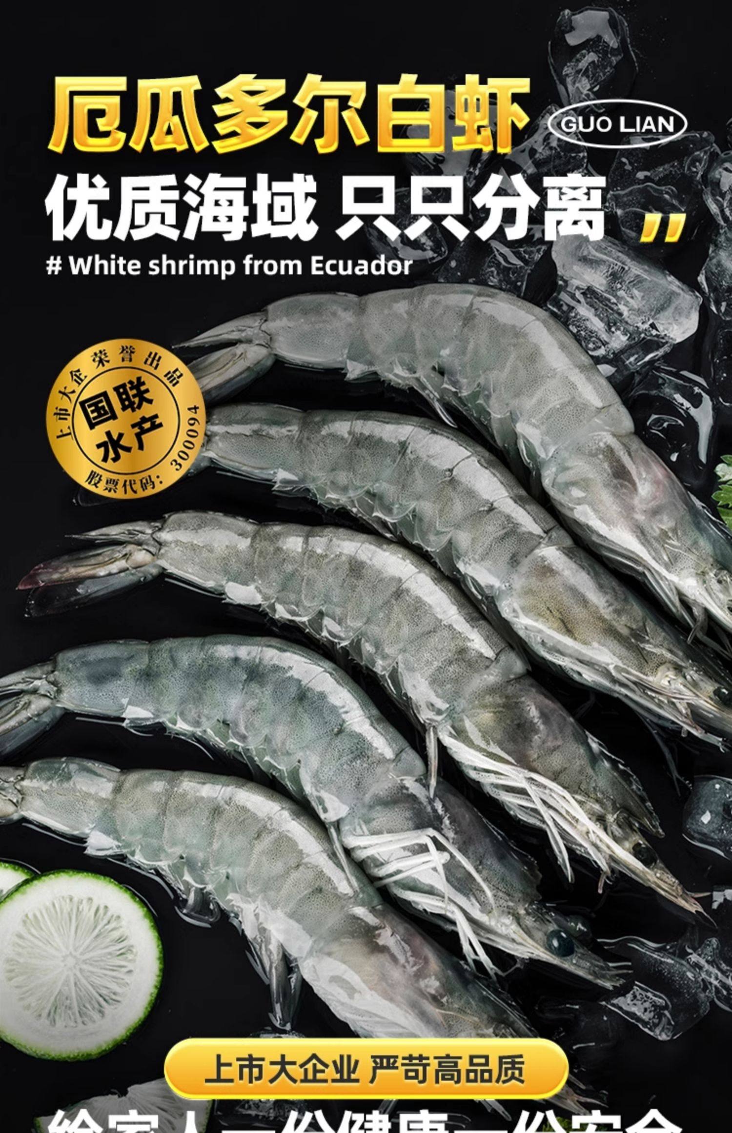 国联水产大虾超大基围虾特大鲜活冷冻厄瓜多尔白虾盐冻速冻海捕虾
