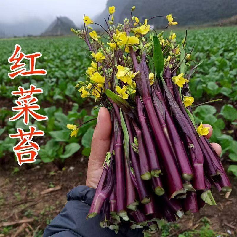 湖北农家种植新鲜红菜苔时令蔬菜现摘现发洪山菜薹正宗露天蔬菜5