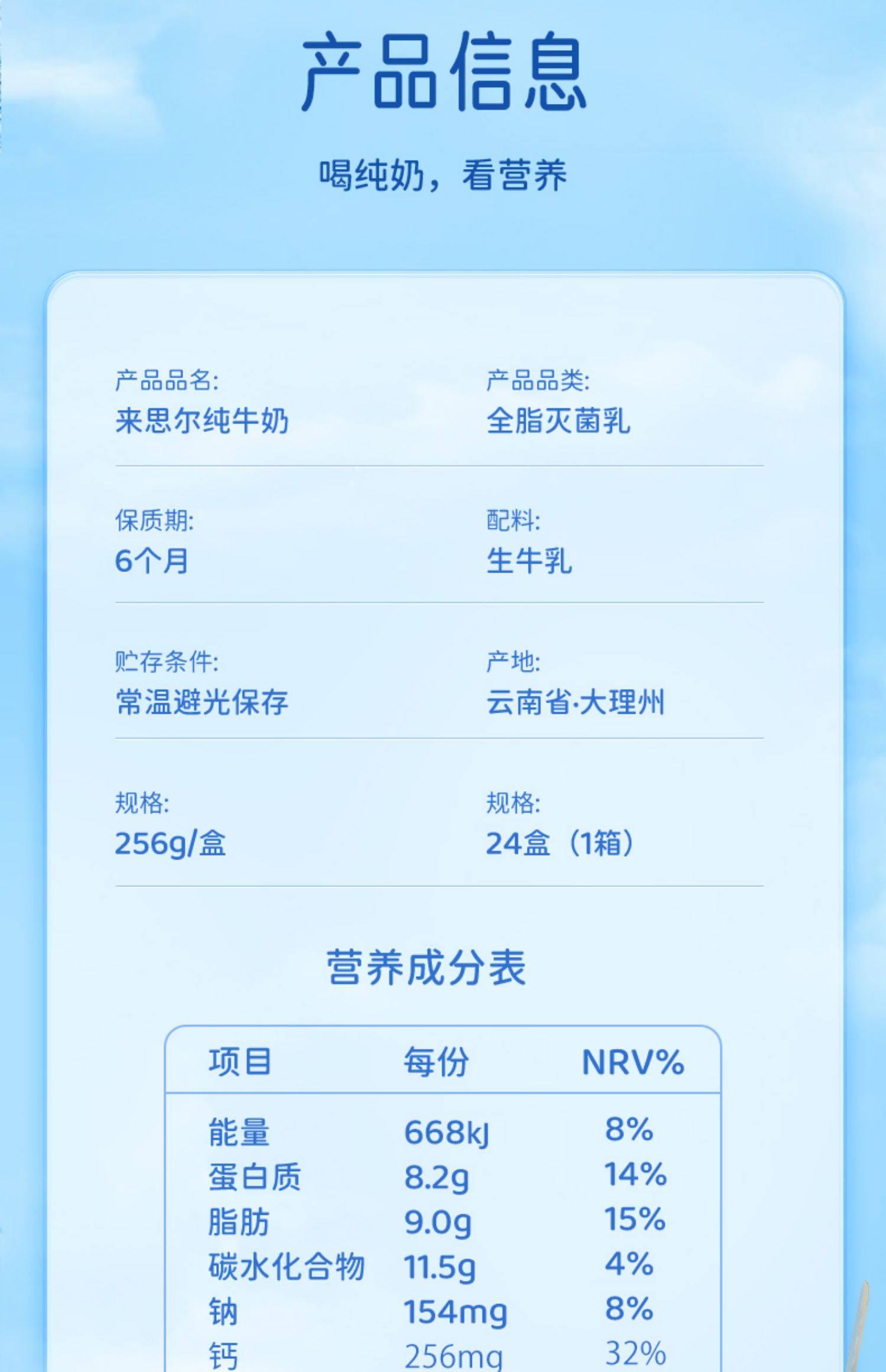 全脂纯牛奶256g*24盒整箱
