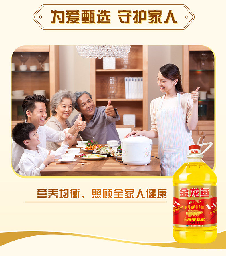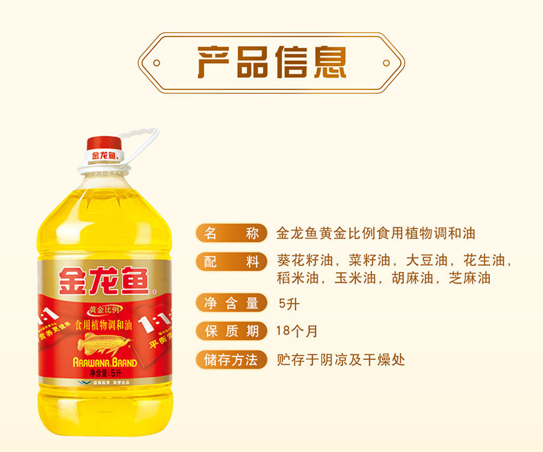 金龙鱼食用油黄金比例调和油5升家用装营养均衡粮油官方正品批发